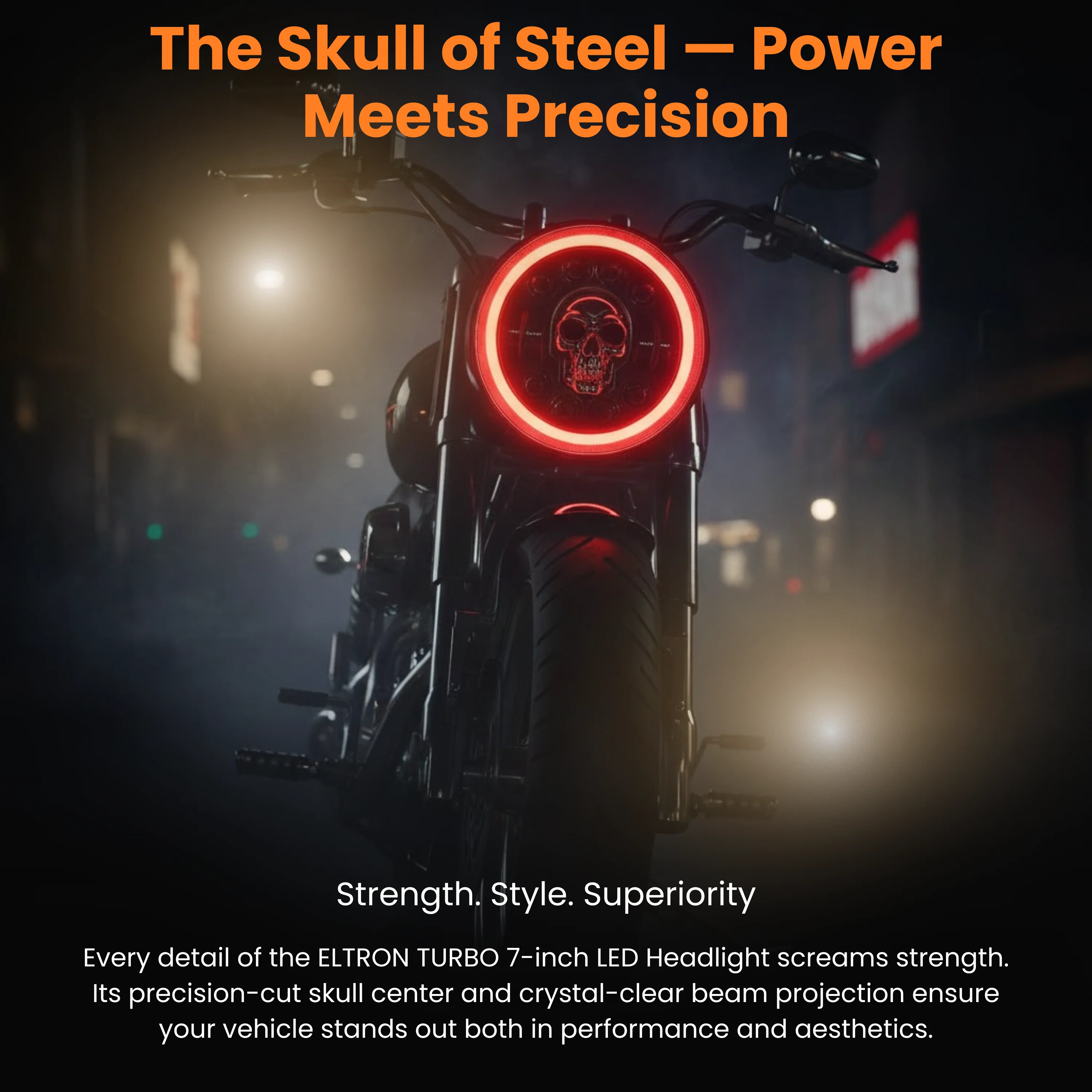 The Eltron Turbo Skull Design LED DRL Headlight combines advanced LED technology with a bold skull-inspired design to deliver enhanced visibility and a distinctive visual upgrade for your vehicle. Featuring dual-color DRL functionality, it offers yellow light for improved visibility in foggy or misty conditions and white light for clear illumination during normal driving.